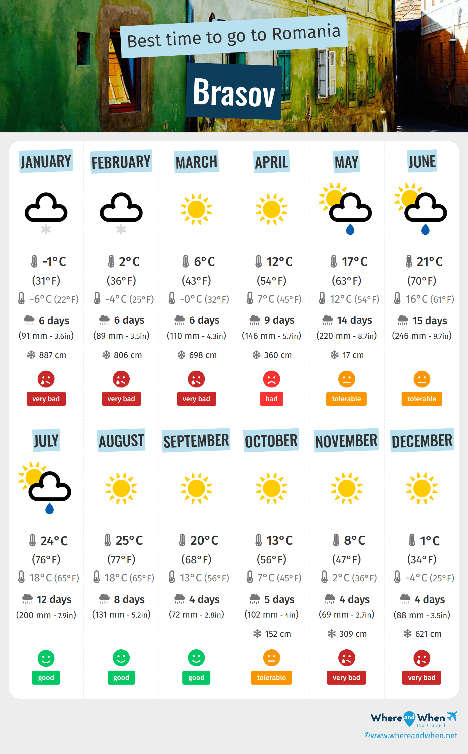 When is the best time to go to Brasov? Here's some information to help you in your decision:
