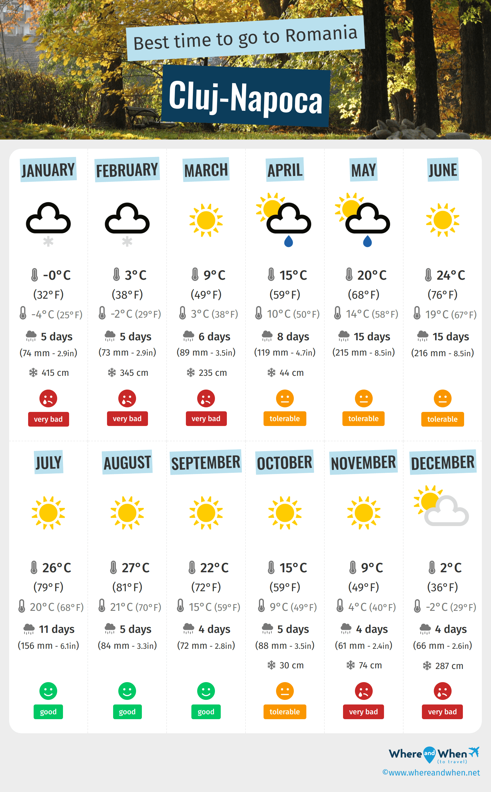 When is the best time to go to Cluj-Napoca? Here's some information to help you in your decision: