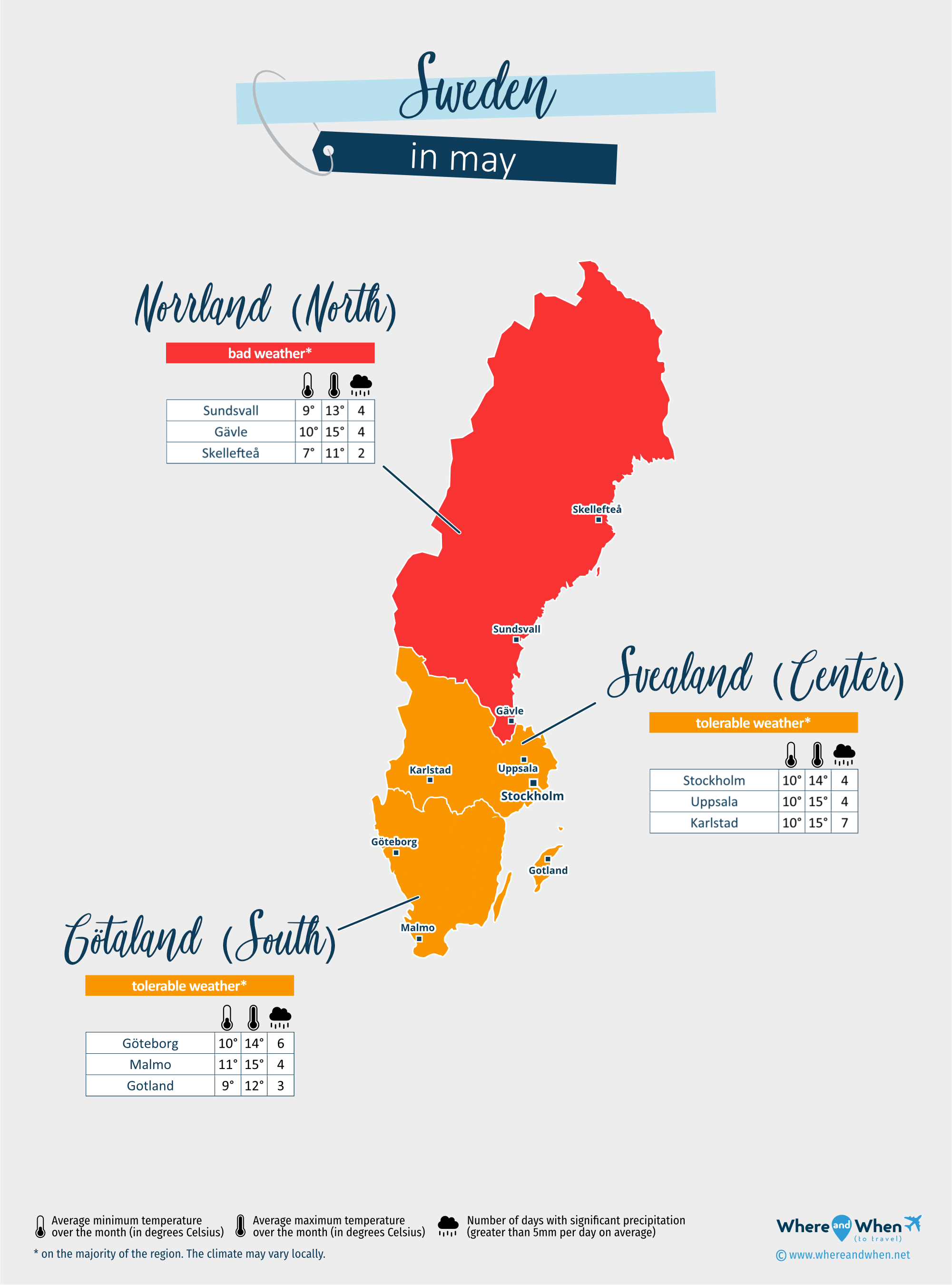 Weather data for Sweden in may: