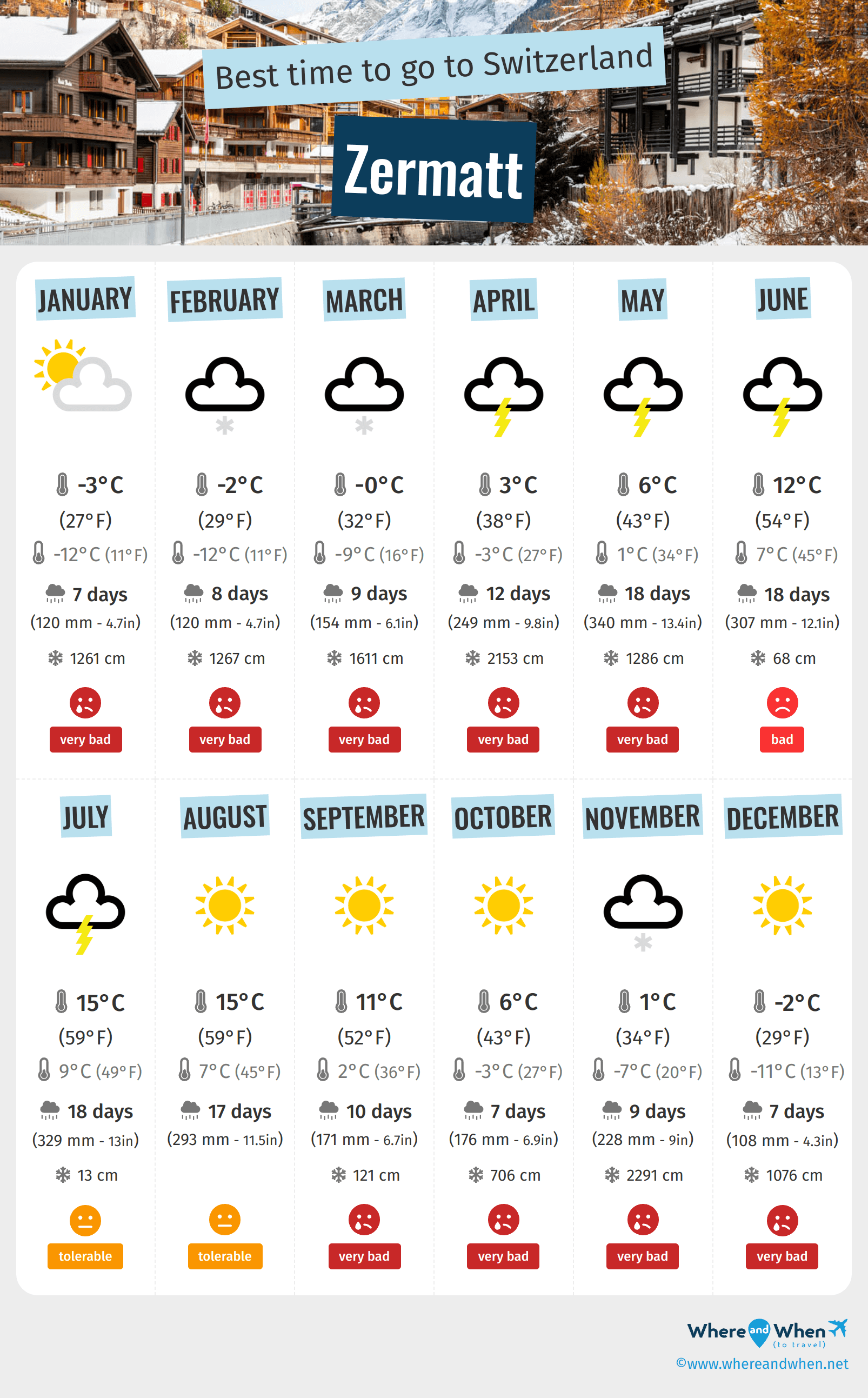 When is the best time to go to Zermatt? Here's some information to help you in your decision: