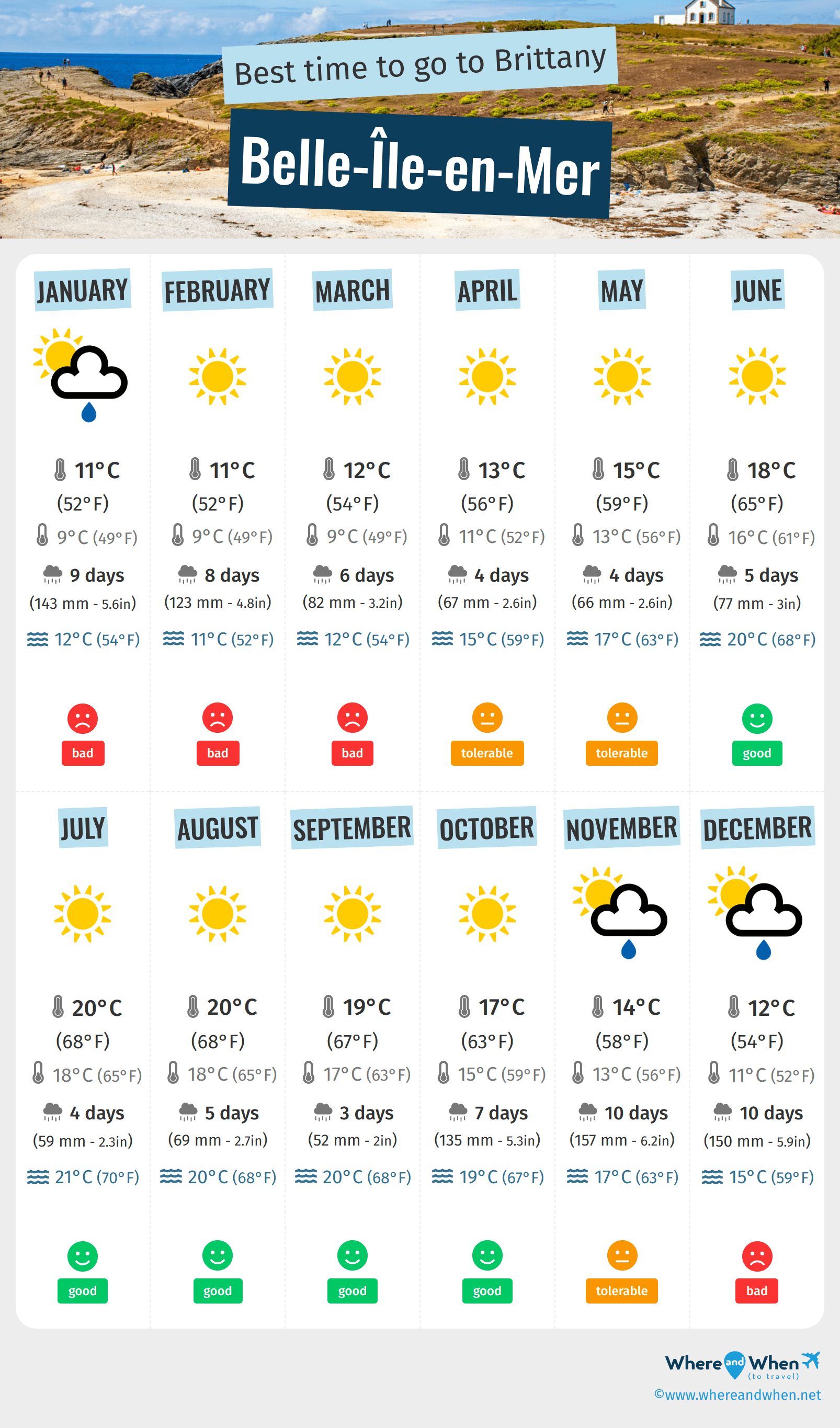 When is the best time to go to Belle-Île-en-Mer? Here's some information to help you in your decision: