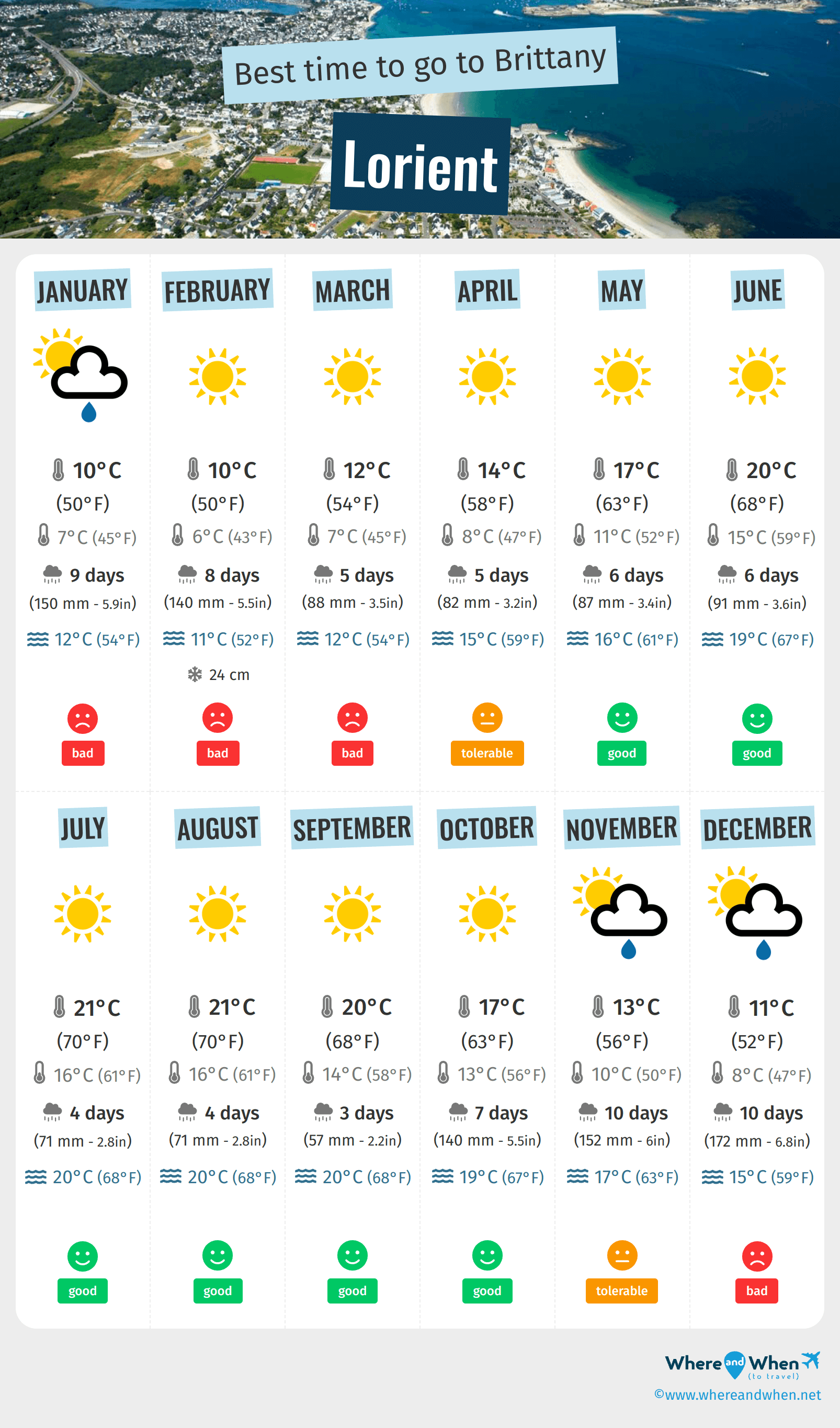 When is the best time to go to Lorient? Here's some information to help you in your decision: