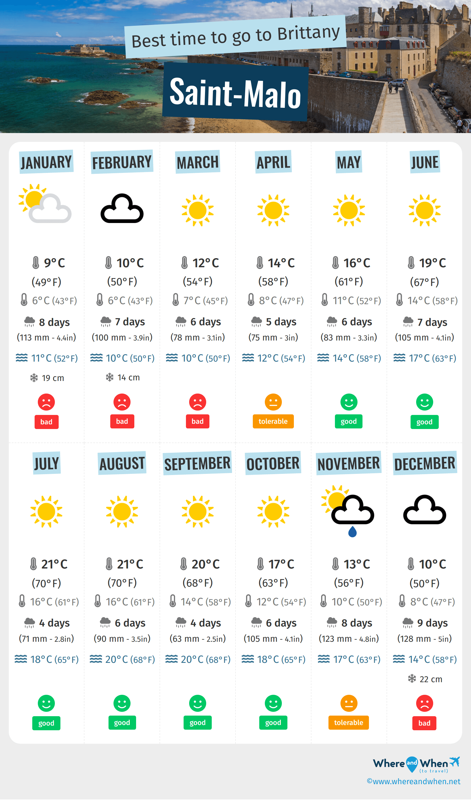 When is the best time to go to Saint-Malo? Here's some information to help you in your decision: