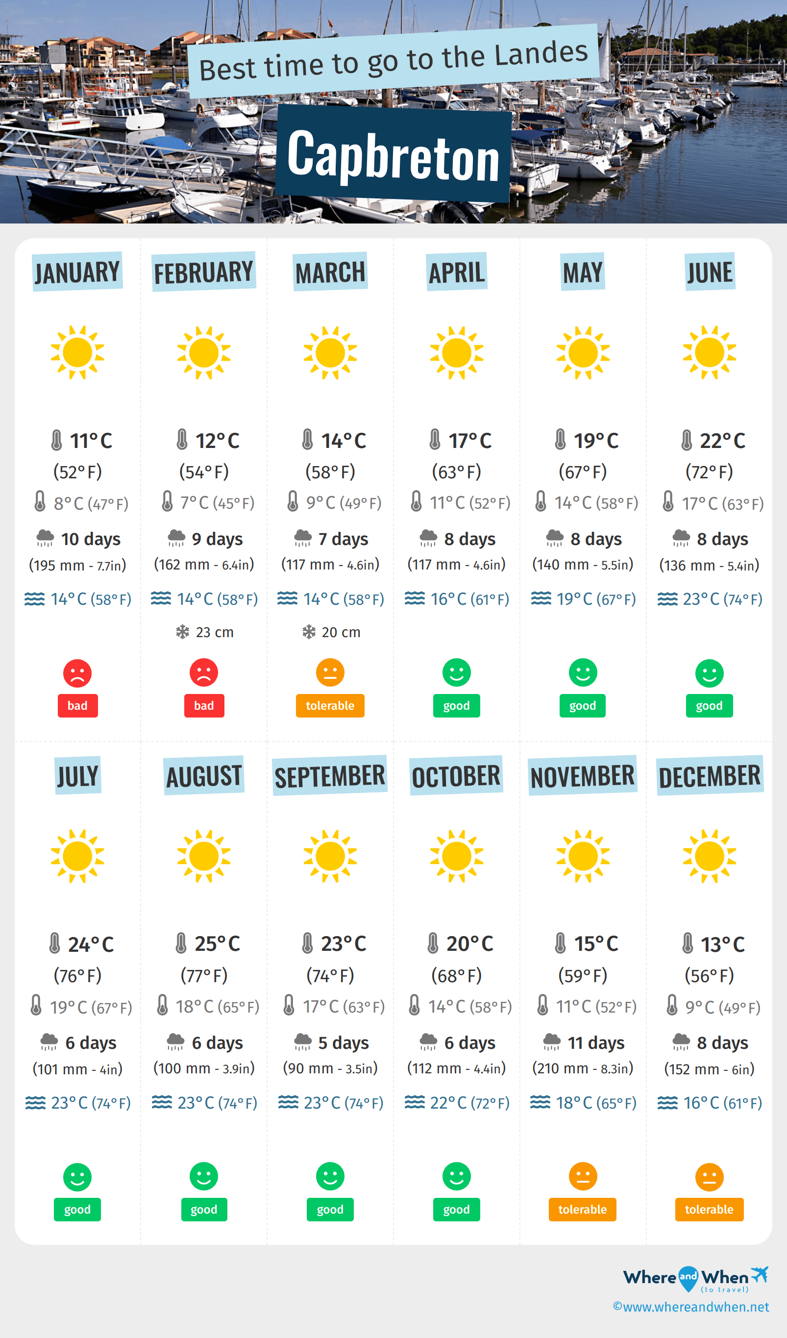 When is the best time to go to Capbreton? Here's some information to help you in your decision:
