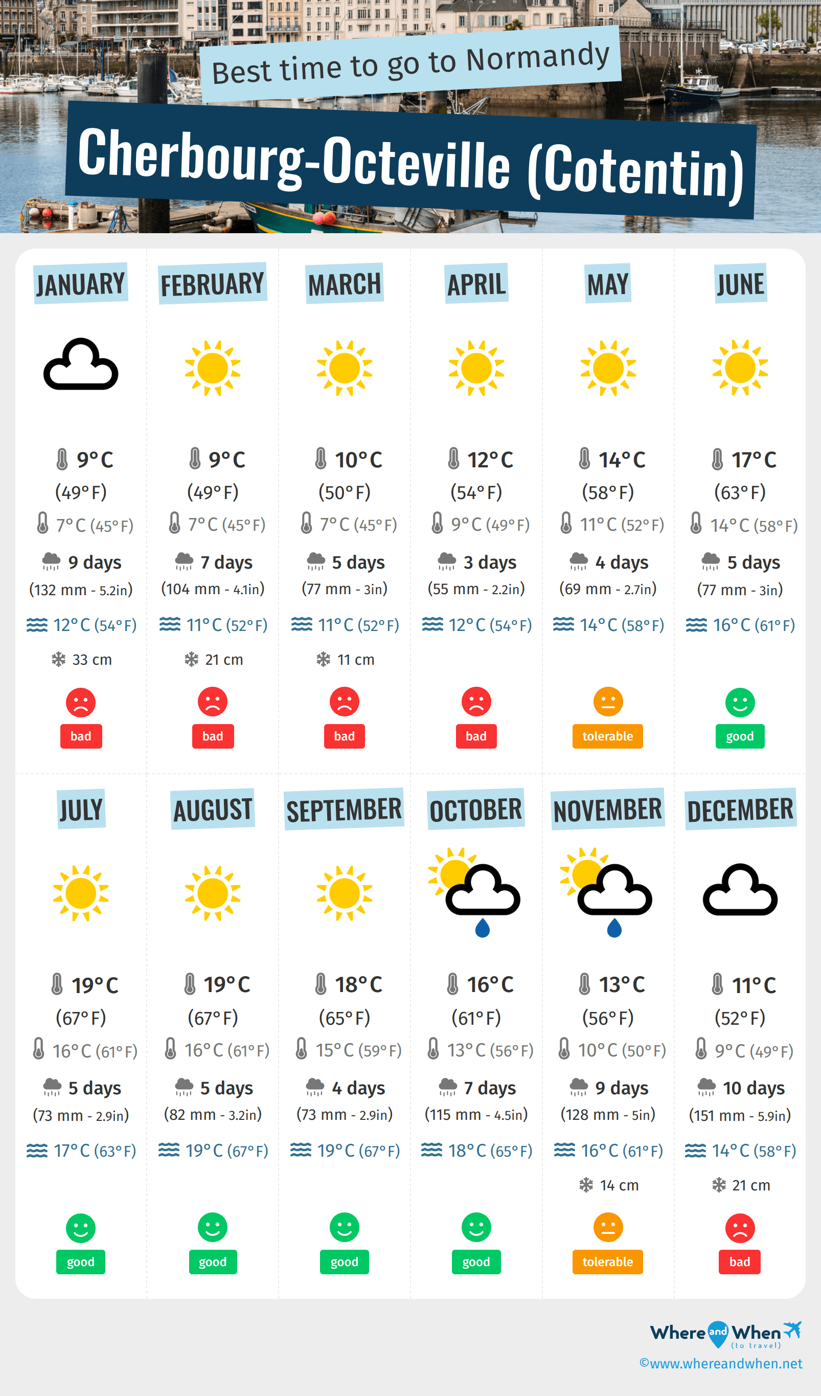 When is the best time to go to Cherbourg-Octeville (Cotentin)? Here's some information to help you in your decision: