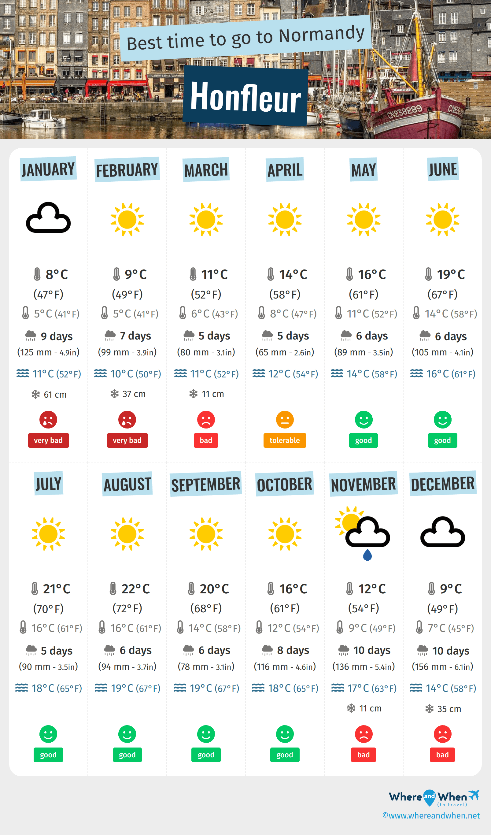 When is the best time to go to Honfleur? Here's some information to help you in your decision: