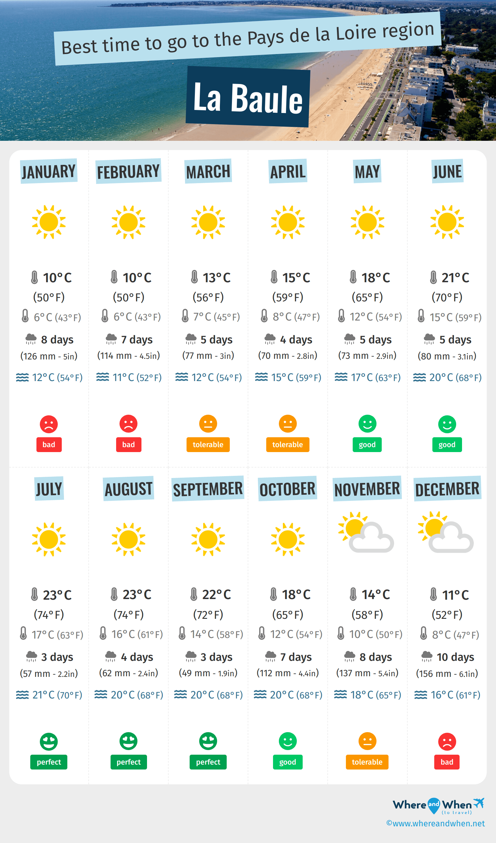 When is the best time to go to La Baule? Here's some information to help you in your decision: