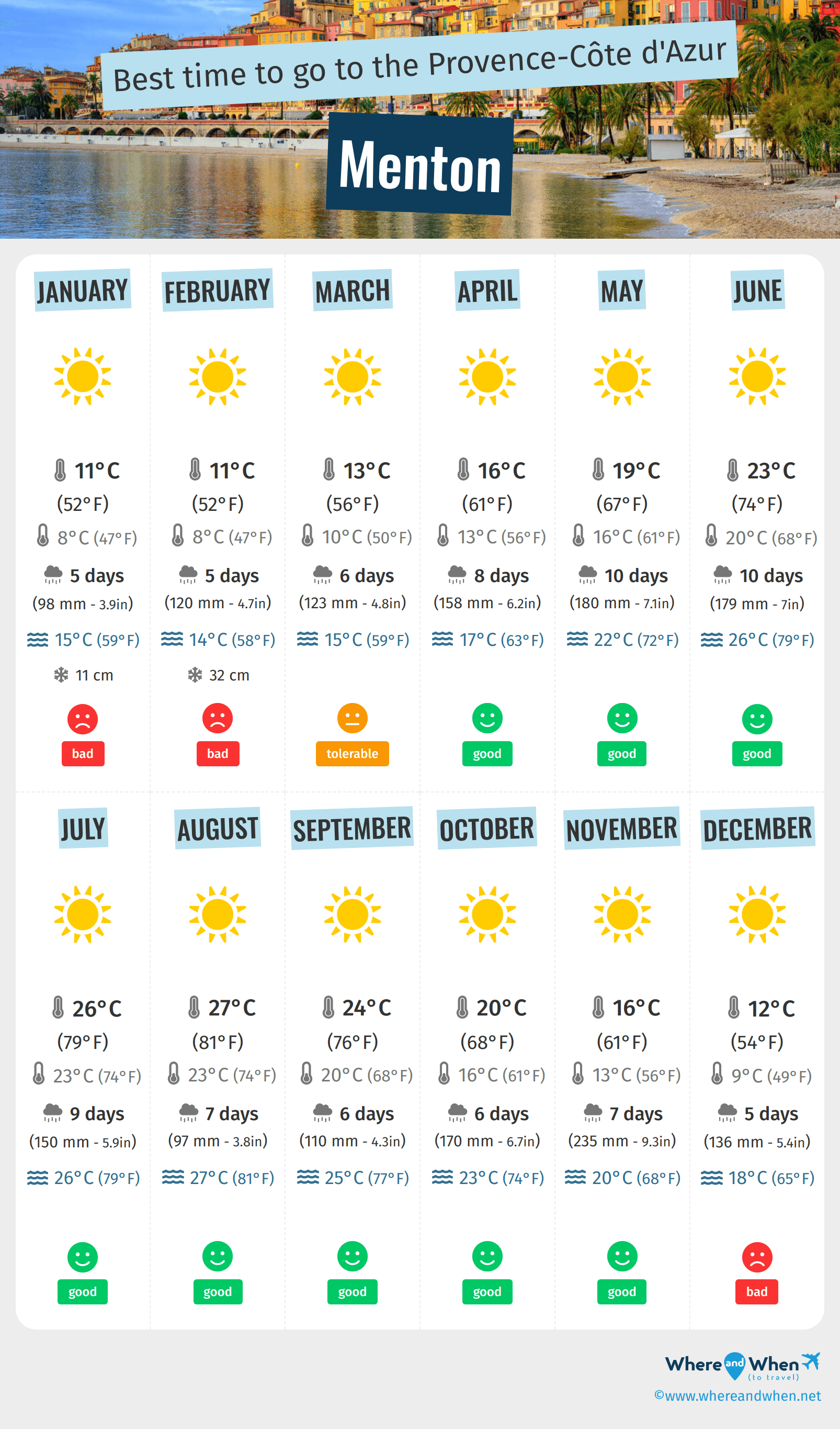 When is the best time to go to Menton? Here's some information to help you in your decision: