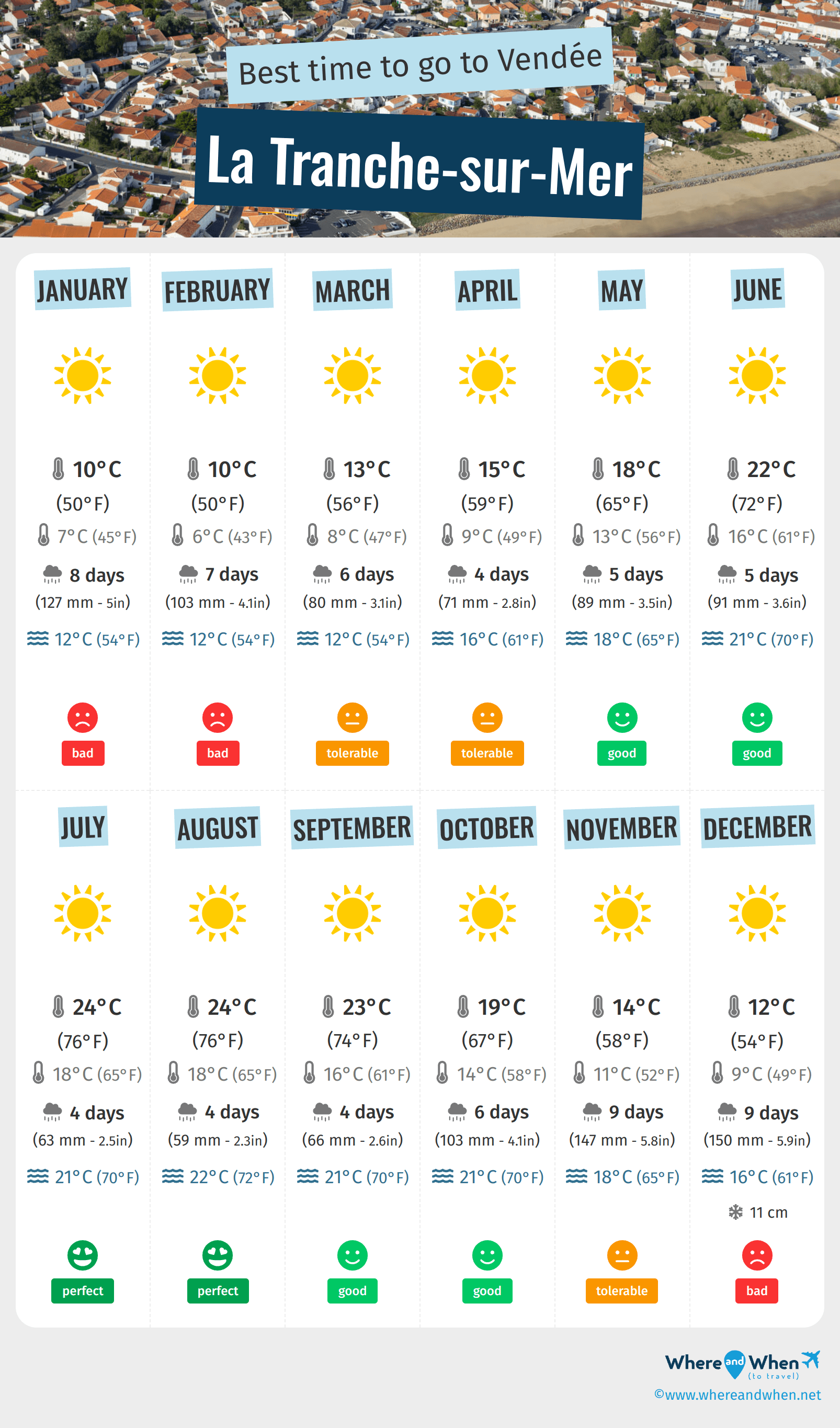 When is the best time to go to La Tranche-sur-Mer? Here's some information to help you in your decision: