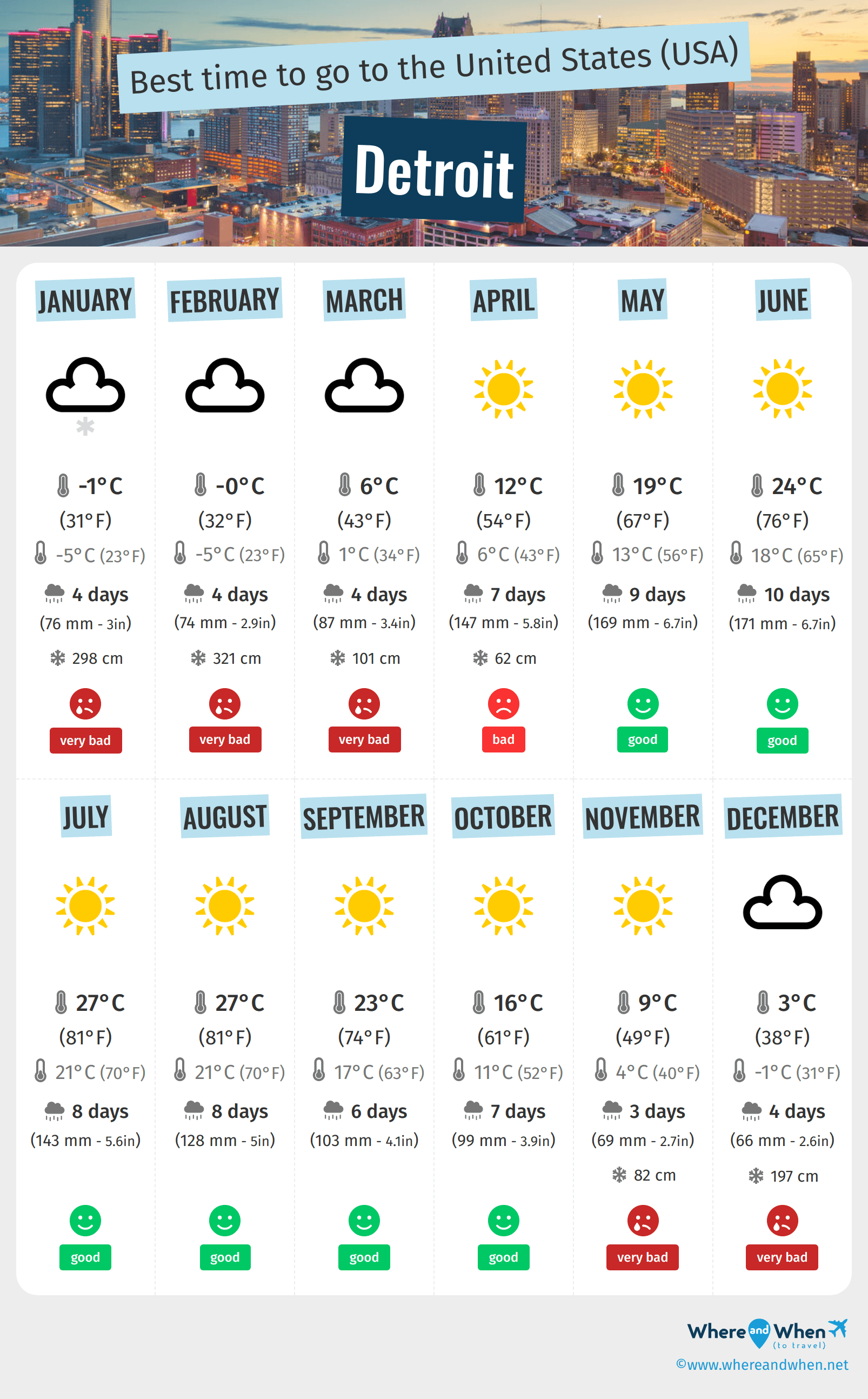 When is the best time to go to Detroit? Here's some information to help you in your decision: