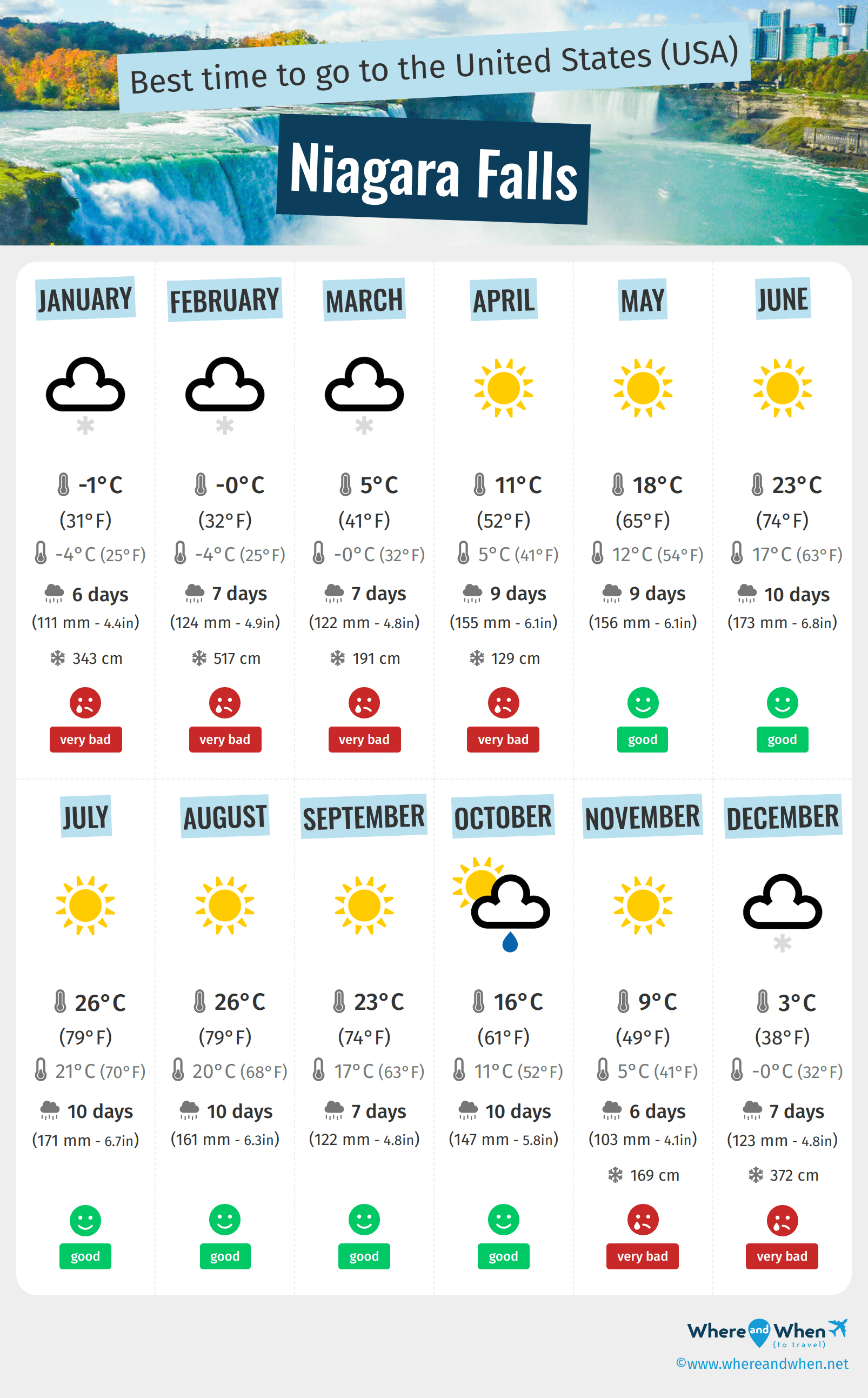 Best time to go to Niagara Falls Average weather of Niagara Falls, United States