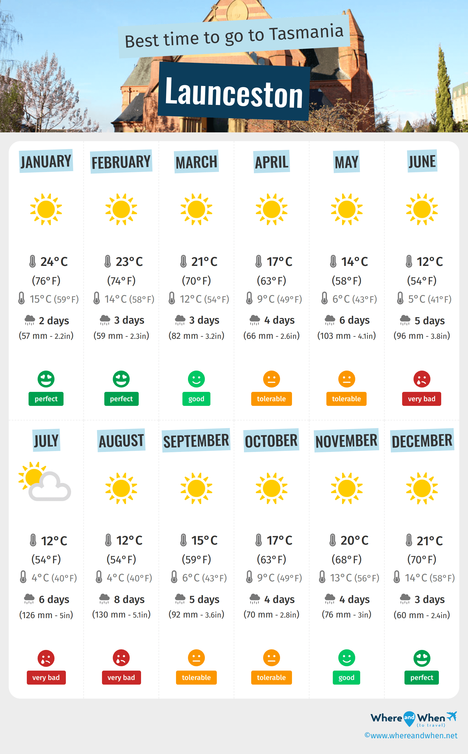 When is the best time to go to Launceston? Here's some information to help you in your decision: