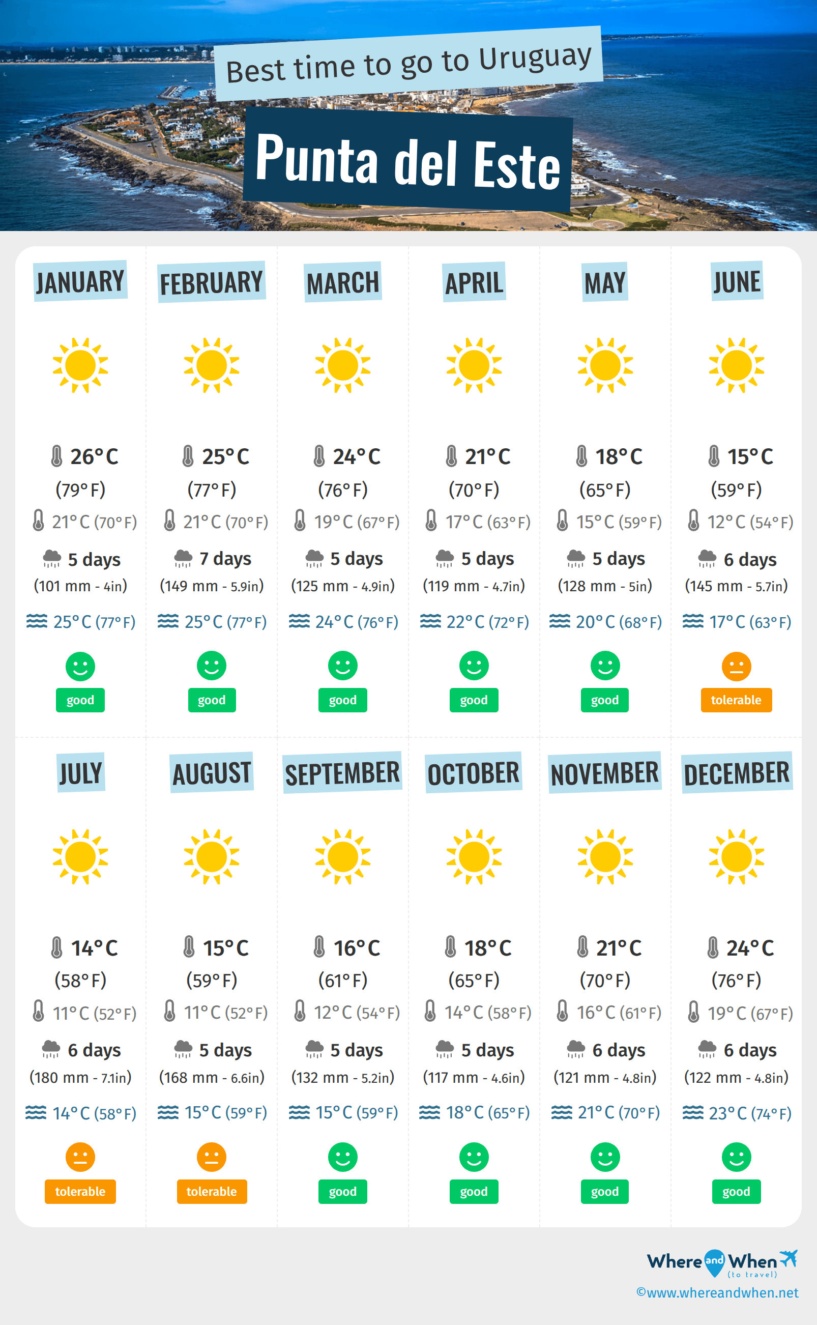 Best time to go to Punta del Este Average weather of Punta del Este, Uruguay